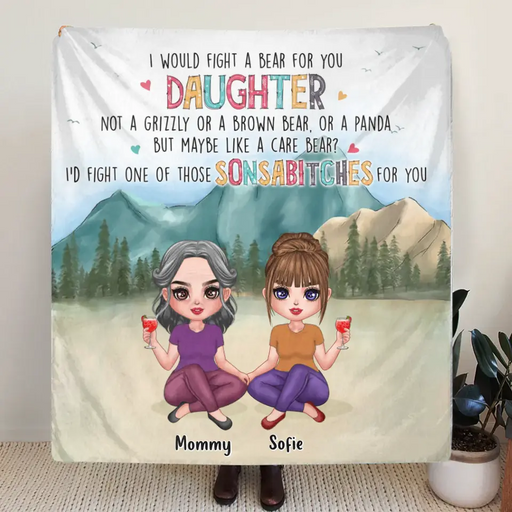 View full detailsPersonalized Mom And Daughter Fleece Throw Blanket/Quilt - Gift Idea From Mom To Daughter - I Would Fight A Bear For You Daughter