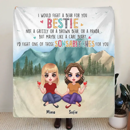 View full detailsPersonalized Besties Fleece Throw Blanket/Quilt - Up to 5 Girls - Gift Idea For Besties/Friends/Sisters - I Would Fight A Bear For You Bestie