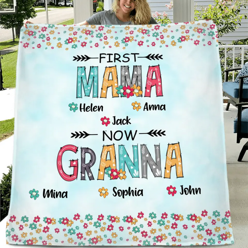 View full detailsPersonalized Grandma Fleece Throw Blanket/Quilt - Up to 4 Kids And 8 Grandkids - Mother's Day Gift Idea for Grandma - First Mom Now Nana Kid And Grandkids Flower Pattern