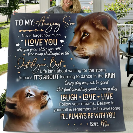 View full detailsPersonalized Lion Fleece Throw Blanket/Quilt - Gift Idea For Mother's Day/Father's Day - Never Forget How Much I Love You