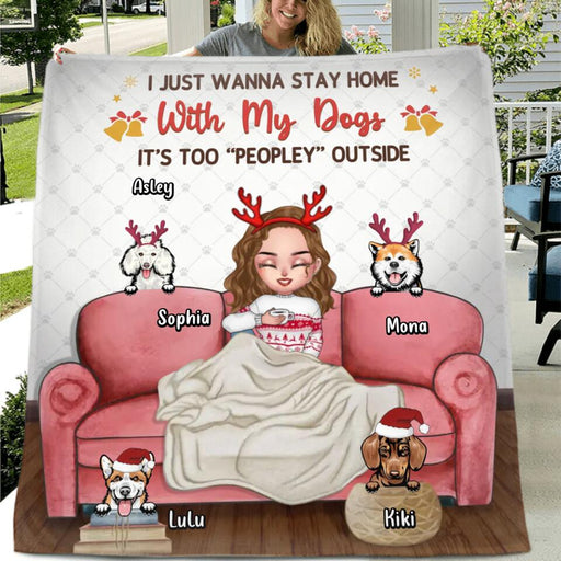 View full detailsPersonalized Dog Mom Xmas Fleece Throw Blanket/Quilt- Gift Idea For Dog Lovers - Up to 4 Dogs - I Just Wanna Stay Home With My Dogs, It's Too "Peopley" Outside