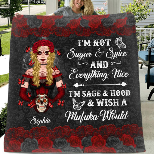Personalized Sugar Skull Fleece Blanket/Quilt - Skull Gift For Girl - I'm Not Sugar & Spice