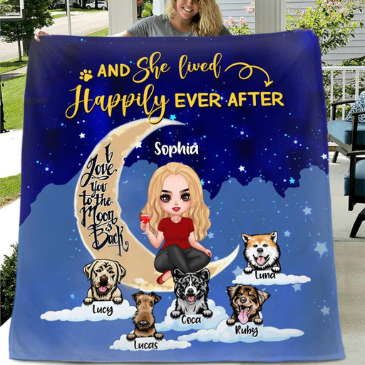 View full detailsPersonalized Dog Mom On Moon Quilt/Fleece Blanket - Girl With Up to 5 Dogs - Gift Idea For Dog Lover - And She Lived Happily Ever After