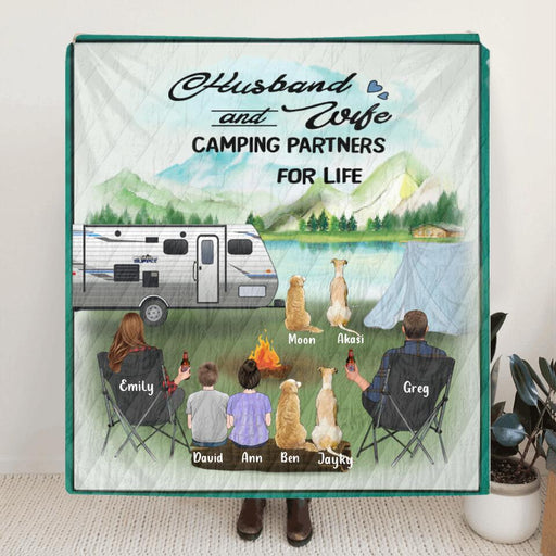 View full detailsPersonalized Camping Quilt Blanket - Parents with 2 Kids and 4 Dogs - Gift Idea For The Whole Family, Dog Lovers - Husband And Wife Camping Partners For Life