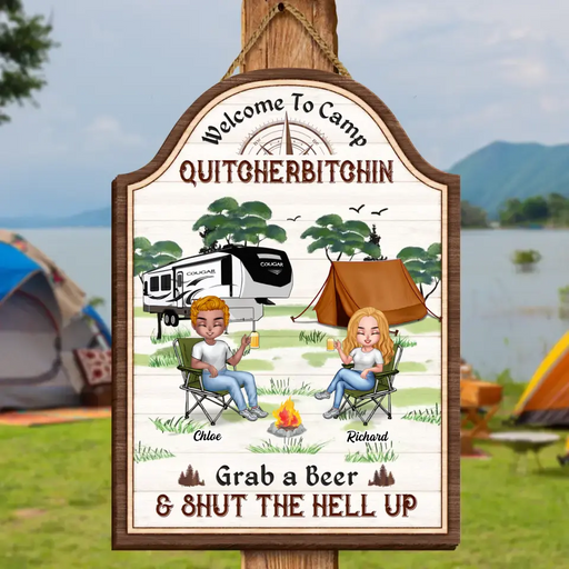 View full detailsPersonalized Camping Wooden Sign - Best Gift For Camping Lovers/Friends - Up to 7 Friends - Welcome To Camp Quitcherbitchin