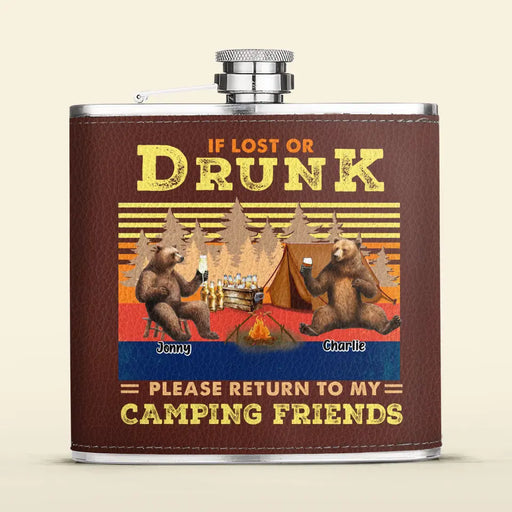 View full detailsPersonalized Camping Leather Flask - Up to 6 Bears - Father's Day Gift Idea for Camping Lovers - If Lost Or Drunk Please Return To My Camping Friends