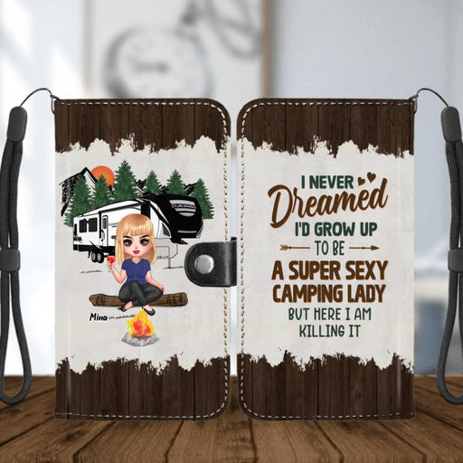 View full detailsPersonalized Camping Girl Flip Leather Purse For Mobile Phone - Gift Idea For Camping Lover - I Never Dreamed I'd Grow Up To Be A Super Sexy Camping Lady