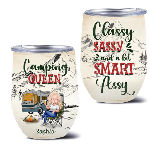 Personalized Camping Queen Wine Tumbler - Gift Idea For Camping Lovers - Camping Queen Classy Sassy And A Bit Smart Assy