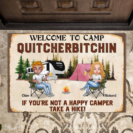 View full detailsCustom Personalized Welcome To Camp Quitcherbitchin Doormat - Gift Idea For Camping Lovers - Up To 6 People - If You're Not A Happy Camper Take A Hike!