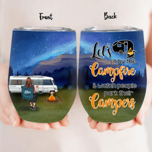 Personalized Camping Wine Tumbler - Gift For Camping Lovers - Single/Couple with up to 4 Pets - Let's Sit By The Campfire