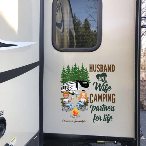 Personalized Husband And Wife Camping 3D Decal - Gift Idea For Couple/Camping Lovers/RVs Owners - Let's Sit By The Campfire And Watch People Park Their Campers