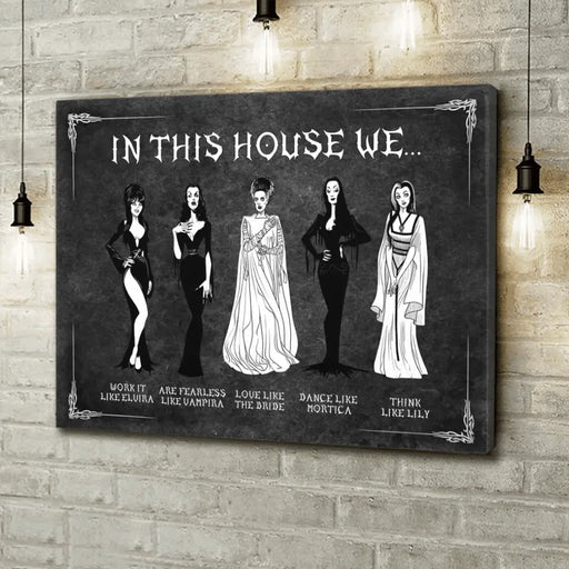 View full detailsCustom Personalized Horizontal Canvas Gift Idea - In This House We Work It Like Elvira
