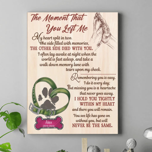 View full detailsPersonalized Memorial Pet Pawprint Canvas - Memorial Gift Idea For Dog/Cat Lover - The Moment That You Left Me