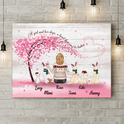View full detailsPersonalized Dog Mom/Dad Canvas - Mom/Dad With Up To 5 Dogs - Gift Idea For Dog Lovers - A Girl And Her Dogs, A Bond That Can't Be Broken