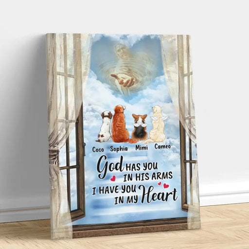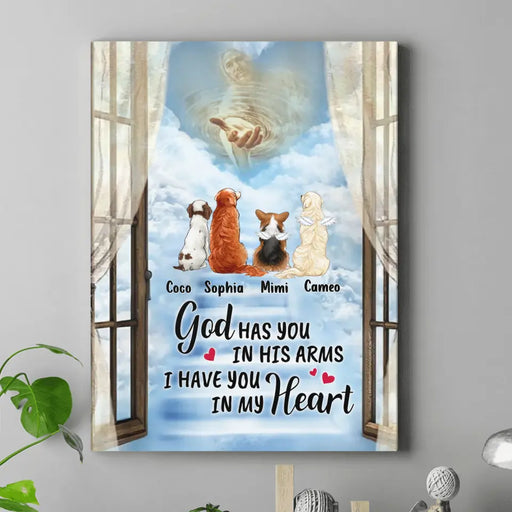 View full detailsPersonalized Memorial Pet Vertical Canvas - Memorial Gift Idea For Pet Lovers - God Has You In His Arms I Have You In My Heart