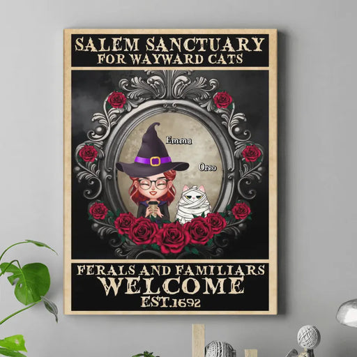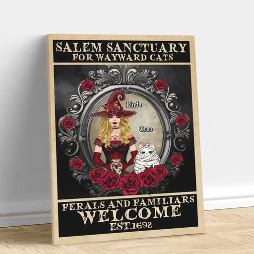 View full detailsPersonalized Halloween Cat Mom Canvas - Up to 4 Cats - Halloween Gift For Cat Lovers/Wiccan Decor/Pagan Decor/Wall Art Wicked Witch - Salem Sanctuary For Wayward Cats