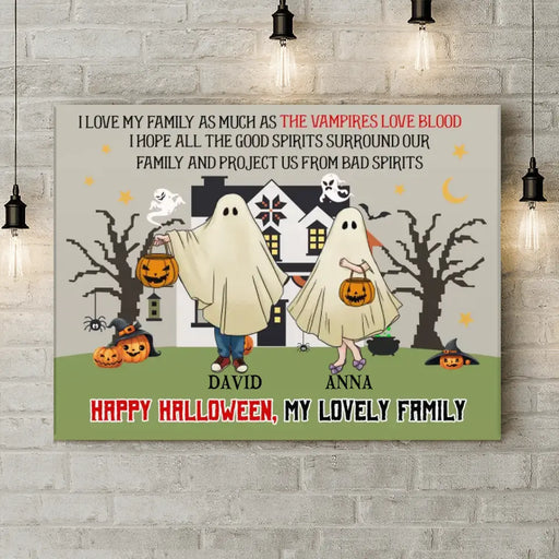 View full detailsPersonalized Halloween Ghost Family Canvas - Halloween Gift For Couple/Family - Up to 5 People With 4 Pets - I Love My Family