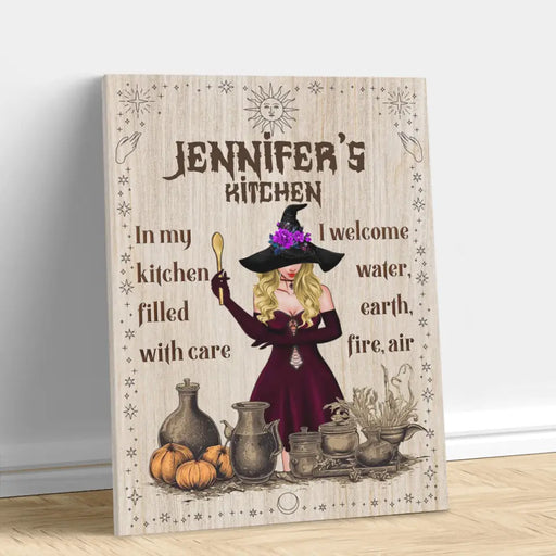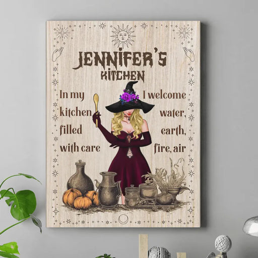 View full detailsPersonalized Witch Vertical Canvas - Gift Idea For Halloween/ Witch/ Pagan Decor - In My Kitchen Filled With Care I Welcome Water, Earth, Fire, Air