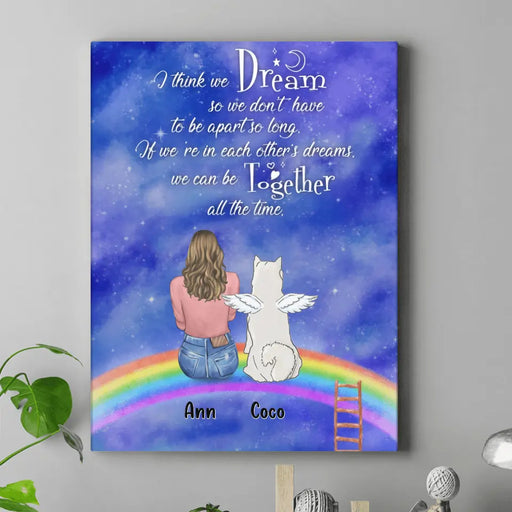 View full detailsCustom Personalized Pet Mom/Dad Vertical Canvas - Up to 4 Dogs/Cats - Gift Idea For Cat Lover/Dog Lover - I Think We Dream So We Don't Have To Be Apart So Long