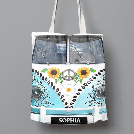 View full detailsCustom Personalized Sunflower Peace Bus Canvas Bag - Best Gift Idea For Bus Lovers