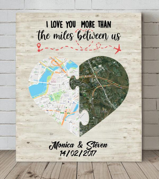 View full detailsPersonalized Long Distance Relationship Canvas - I Love You More Than The Miles Between Us