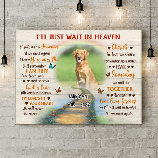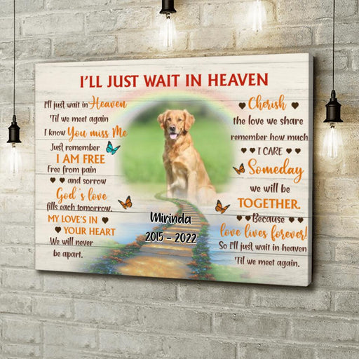 View full detailsPersonalized Dog Memorial Canvas - Custom Photo Dog - Loss Gifts for Dog Owners - I'll Just Wait In Heaven
