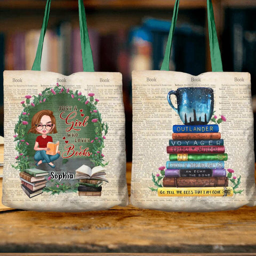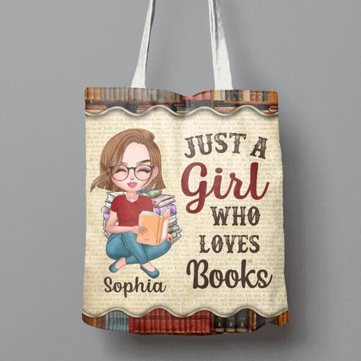 Personalized Girl Reading Book Canvas Bag - Gift Idea For Reading Lover - Just A Girl Who Loves Books