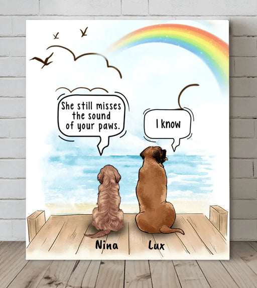 View full detailsPersonalized Memorial Dog Canvas - Up to 5 Dogs - Memorial Gift For Dog Lovers - She Still Misses The Sound Of Your Paws - RLSGFH