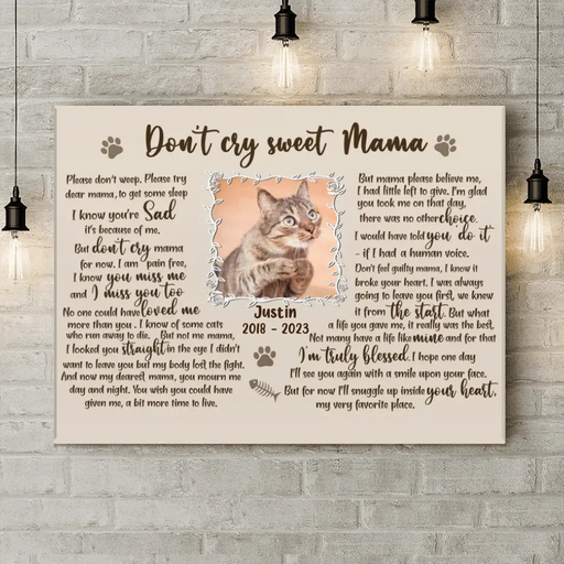 View full detailsPersonalized Cat Custom Photo Horizontal Canvas - Memorial Gift For Cat Mom - Don't Cry Sweet Mama
