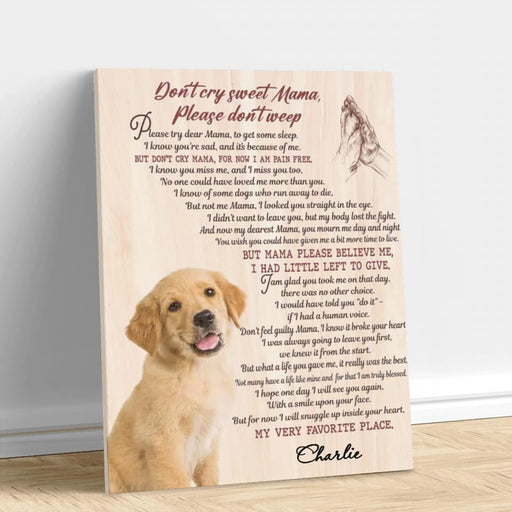 View full detailsCustom Personalized Memorial Pet Photo Canvas/Poster - Gift Idea For Dog/Cat Lovers - Don't Cry Sweet Mama
