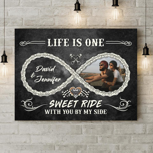 View full detailsPersonalized Motorcycle Chain Infinity Symbol Canvas - Gift Idea For Couple - Life Is One Sweet Ride With You By My Side