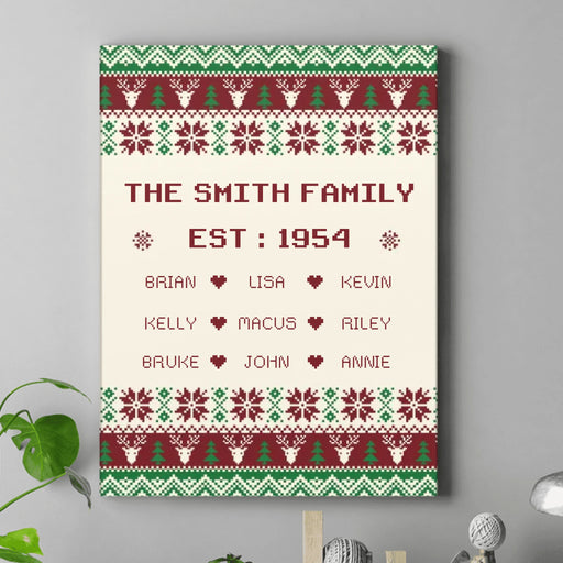 View full detailsPersonalized Family Christmas Canvas – Custom Family Name, Established Year & Names with up to 9 Members – Ugly Sweater Holiday Decor for Home & Living Room