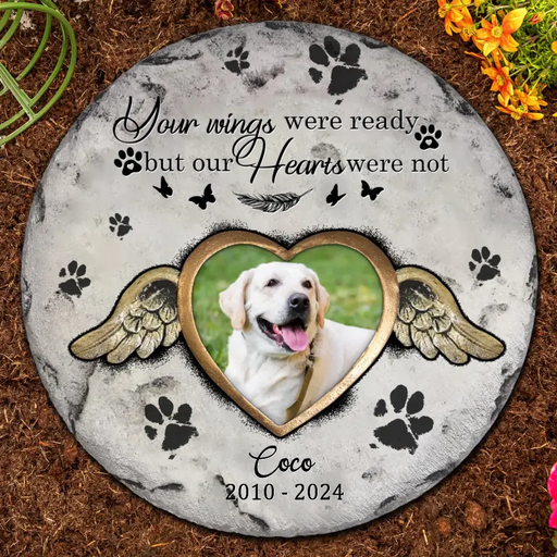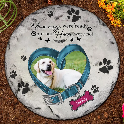 View full detailsPersonalized Memorial Pet Dog Photo Circle Lithograph - Memorial Gift Idea For Dog Owners - Your Wings Were Ready But Our Hearts Were Not