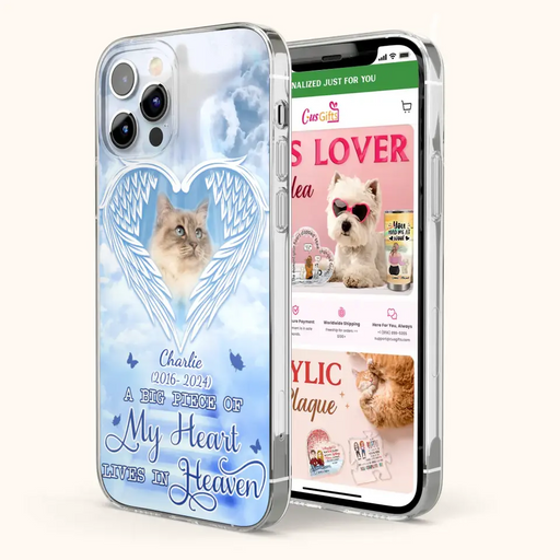 View full detailsCustom Personalized Memorial Pet Phone Case - Upload Photo - Memorial Gift Idea For Pet Owner - A Big Piece Of My Heart Lives In Heaven - Case For iPhone/ Samsung