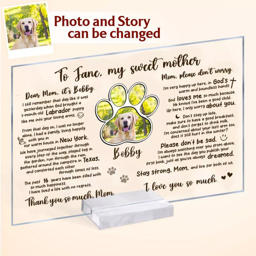 View full detailsPersonalized Memorial Pet Acrylic Plaque - Custom Photo And Dog's Story - Memorial Gift Idea For Dog Lover