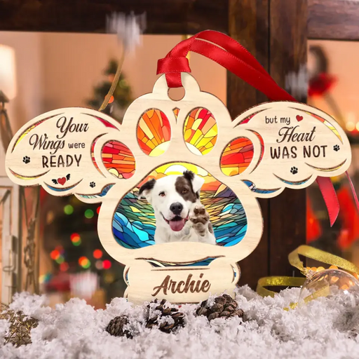 View full detailsCustom Personalized Memorial Pet Photo Wooden Ornament - Memorial Gift Idea for Christmas - Your Wings Were Ready But My Heart Was Not