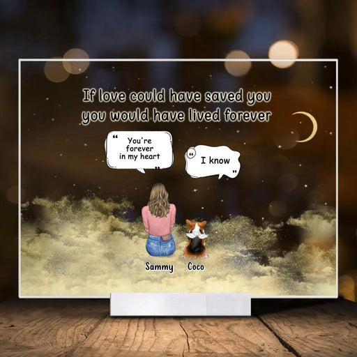 View full detailsPersonalized Memorial Pet Acrylic Plaque - Adult/Couple With Up to 4 Pets - Memorial Gift Idea For Dog/Cat Lover - If Love Could Have Saved You You Would Have Lived Forever