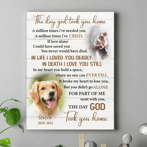 View full detailsCustom Personalized Memorial Pet Photo Canvas - Memorial Gift Idea For Pet Lover - The Day God Took You Home