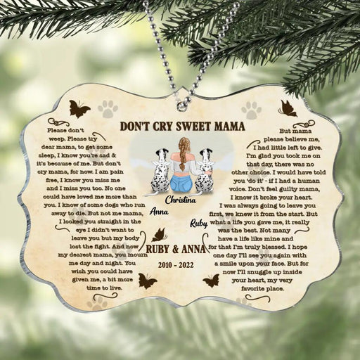View full detailsCustom Personalized Memorial Pet Mom Rectangle Acrylic Ornament - Memorial Gift Idea For Pet Lovers - Don't Cry Sweet Mama