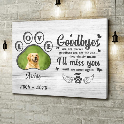 View full detailsCustom Personalized Memorial Pet Loss Canvas - Gift Idea For Pet Lovers - Goodbyes Are Not Forever Goodbyes Are Not The End