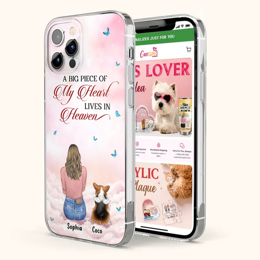 View full detailsCustom Personalized Memorial Pet Phone Case - Upto 4 Pets - Memorial Gift Idea For Dog/Cat Lover - A Big Piece Of My Heart Lives In Heaven - Case For iPhone And Samsung