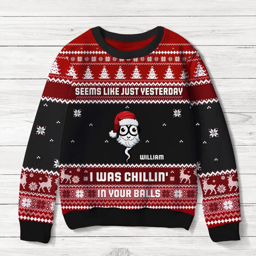 Personalized Dad Xmas Sweater - Gift Idea For Dad/Christmas With Up To 6 Kids - Seems Like Just Yesterday We Were Chillin' In Your Balls