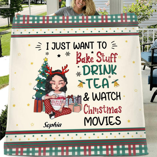 View full detailsPersonalized Christmas Girl Fleece Throw Blanket/Quilt/Pillow Cover - Christmas Gift Idea For Besties/Sisters - I Just Want To Bake Stuff, Drink Tea & Watch Christmas Movies