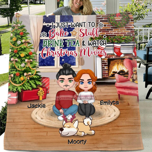 View full detailsPersonalized Couple With Pet Christmas Fleece Throw Blanket/Quilt/Pillow Cover - Christmas Best Gift Idea For Couple - Up To 3 Pets - I Just Want To Bake Stuff, Drink Tea & Watch Christmas Movies