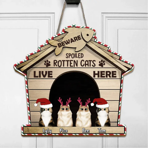 View full detailsPersonalized Christmas Wooden Sign - Gift Idea For Cat Lover with up to 4 Cats - Beware A Spoiled Rotten Cats Live Here