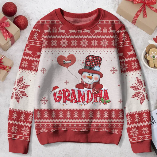 View full detailsPersonalized Grandma Mom Snowman Hearts Sweater - Christmas Gift Idea For Grandma And Grandkids With - Up to 10 Kids