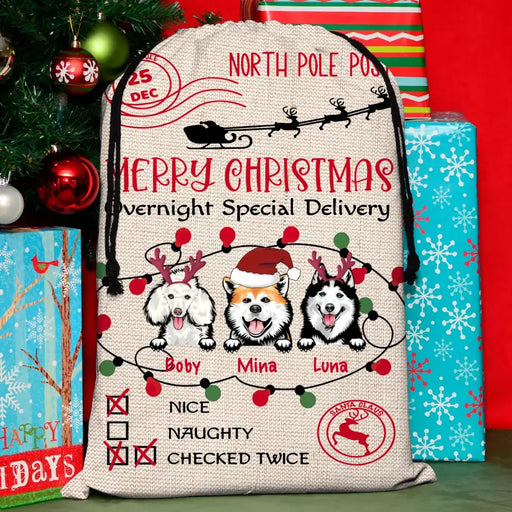 View full detailsPersonalized Dog Santa Sack - Gift Idea For Christmas/Dog Lovers - Up to 3 Dogs - Merry Christmas Overnight Special Delivery