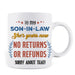 Custom Personalized To Son-In-Law Coffee Mug - Gift Idea For Daughter/Son-In-Law - She's Yours Now No Returns Or Refunds Sorry About That