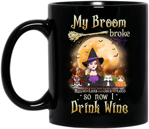 View full detailsPersonalized Witch Pet Mom Coffee Mug - Up to 3 Pets - Halloween Gift For Cat/Dog Mom - My Broom Broke So Now I Drink Wine