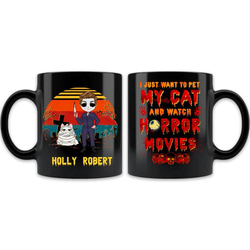 View full detailsPersonalized Horror Movie Coffee Mug - Halloween Gift For Dog Lover/Cat Lover/Horror Movie Lover - Up to 4 Dogs/Cats - I Just Want To Pet My Dog And Watch Horror Movies